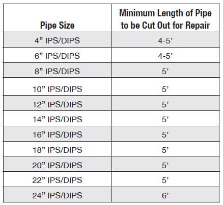 Minimum Recommended Length of Pipe to Remove for Repair Spool